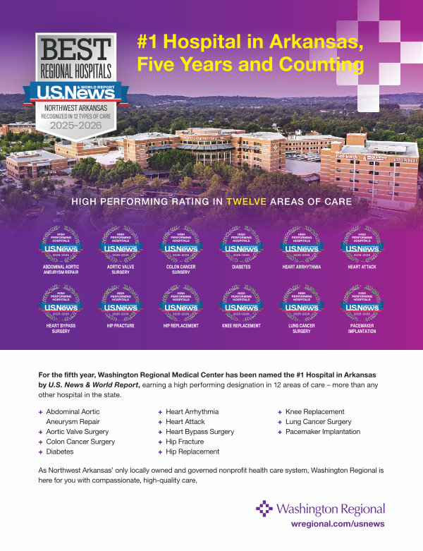 As Northwest Arkansas’ only locally owned and governed nonprofit health care system, Washington Regional is here for you with compassionate, high-quality care. wregional. com / usnews