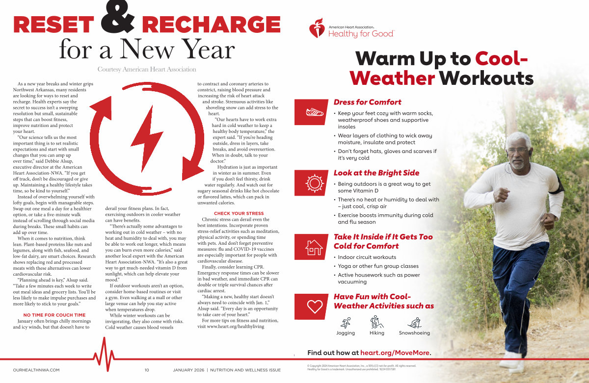 As a new year breaks and winter grips Northwest Arkansas, many residents are looking for ways to reset and recharge. Health experts say the secret to success isn’ t a sweeping resolution but small, sustainable steps that can boost fitness, improve nutrition and protect your heart.